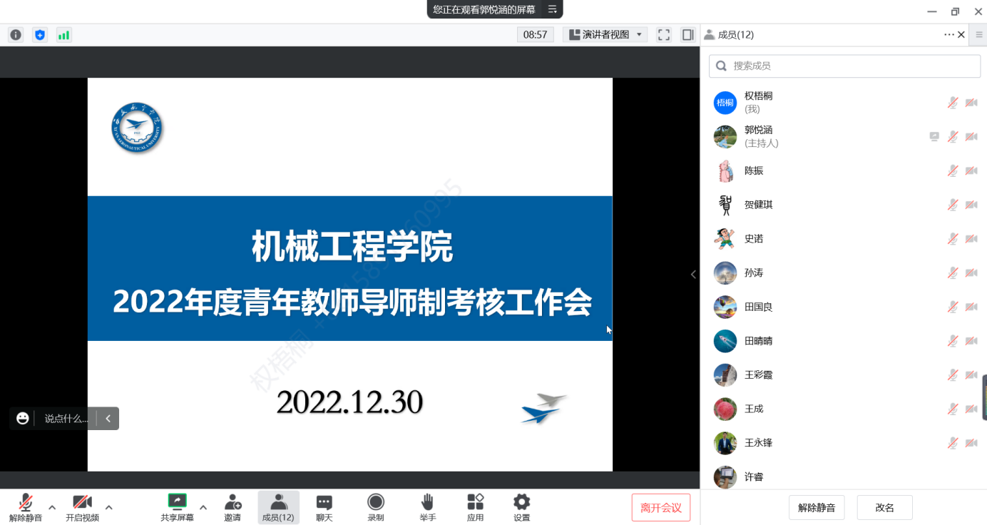 2022年12月30日,金年会jinnianhuicom召开青年教师导师制考核工作会议。考核小组成员、考核对象和指导老师参加会议。会议由考核小组组长王永锋院长主持。
