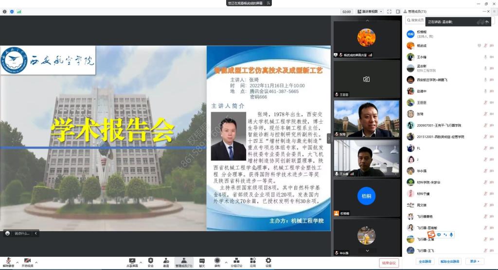 为进一步提升教师科研能力,了解机械学科前沿发展趋势,11月16日上午,金年会jinnianhuicom特邀西安交通大学张琦教授以腾讯会议线上形式为金年会官网师生做题目为《智能成型工艺仿真技术及成型新工艺》的学术报告。金年会jinnianhuicom杨武成副院长主持会议,王永锋院长致欢迎词,金年会jinnianhuicom教师及其他学院百余名教师在线参加了学术报告会议。