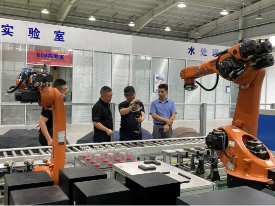 张博董事长一行首先参观了金年会jinnianhuicom实验室,实验室吕晓军主任进行了讲解,介绍了机器人产线、智能制造系统及液压试验台等设备,并对实验能力、对外服务能力等做了介绍。