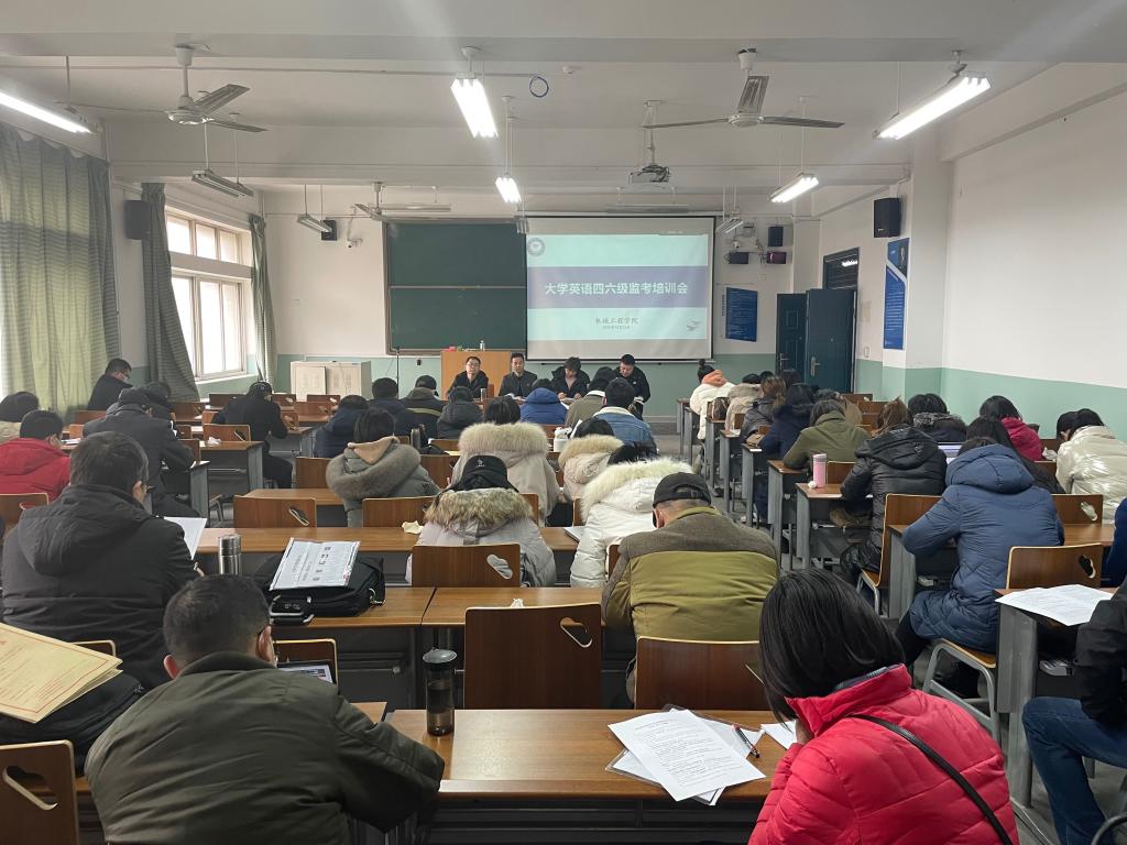 12月15日下午14:30,金年会jinnianhuicom于莲湖校区教学主楼0614室召开了2023年下半年全国大学英语等级考试监考培训会,学院领导和全体监考老师参加会议,会议由学院副院长李懿主持。