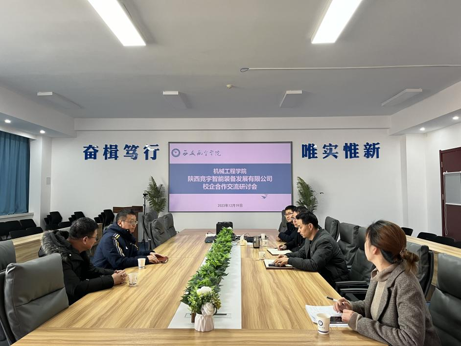12月19日上午,陕西竞宇智能装备发展有限公司总经理张承光带队到阎良校区金年会jinnianhuicom调研交流,洽谈校企合作事宜。金年会jinnianhuicom院长王永锋、副院长杨武成、智能制造工程专业负责人毕永强、2024届毕业生辅导员胡靖洁、科研秘书权梧桐等出席了交流座谈会。