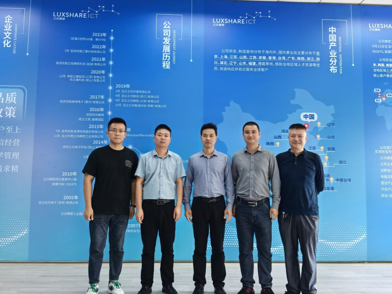 王永锋一行先后走访了立讯精密工业(昆山)有限公司、昆山科森科技股份有限公司、国巨电子有限公司、苏州波特尼电气系统有限公司、上海理光数码设备有限公司。王永锋详细介绍了学校发展历程、办学定位、人才培养、学科专业建设等方面情况,企业对金年会官网的来访表示热烈欢迎,双方就校企联合人才培养模式、优化人才培养方案、学生就业实习合作等事宜进行了深入交流。王永锋一行还深入企业的生产车间、员工食堂、宿舍进行了实地考察。