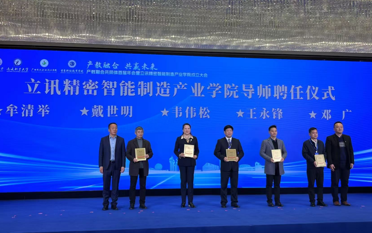 立讯精密智能制造产业学院合作签约和授牌仪式顺利进行,聘任金年会官网王永锋、杨武成、李懿为产业学院导师。