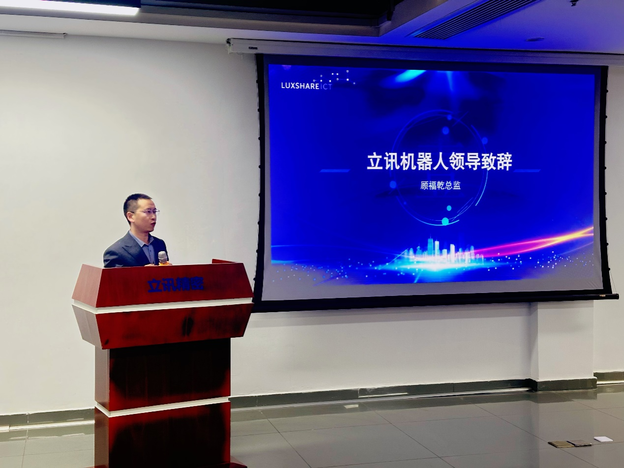 立讯机器人总监顾福乾先生则详细阐述了立讯精密及立讯机器人在智能制造领域的业务布局与发展战略,他表示,立讯机器人将全力支持产业学院的教学与科研工作,为学生提供优质的实践平台与广阔的就业机会,共同推动智能制造领域的技术革新与产业升级。
