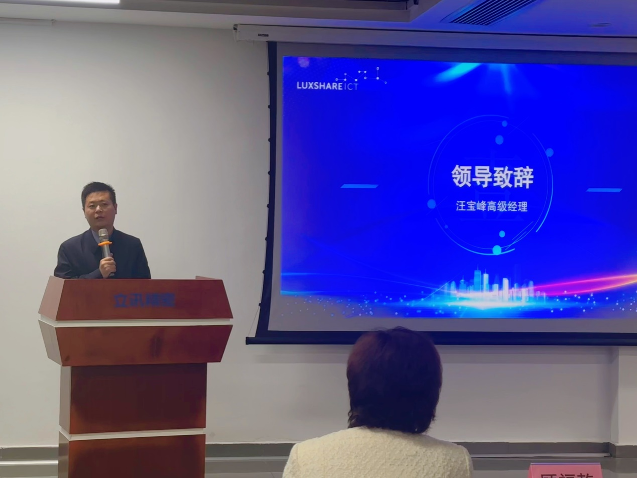 次日,在产业学院内隆重举行了金年会诚信信誉至上金年会jinnianhuicom“立讯订单班”的开班典礼。典礼伊始,立讯产业学院的汪宝峰经理对金年会诚信信誉至上师生的到来表达了诚挚的欢迎,并简要回顾了学院的发展历程与教育理念,他满怀期待地表示,希望通过双方的紧密合作,为智能制造领域输送更多具备创新精神与实践能力的优秀人才。
