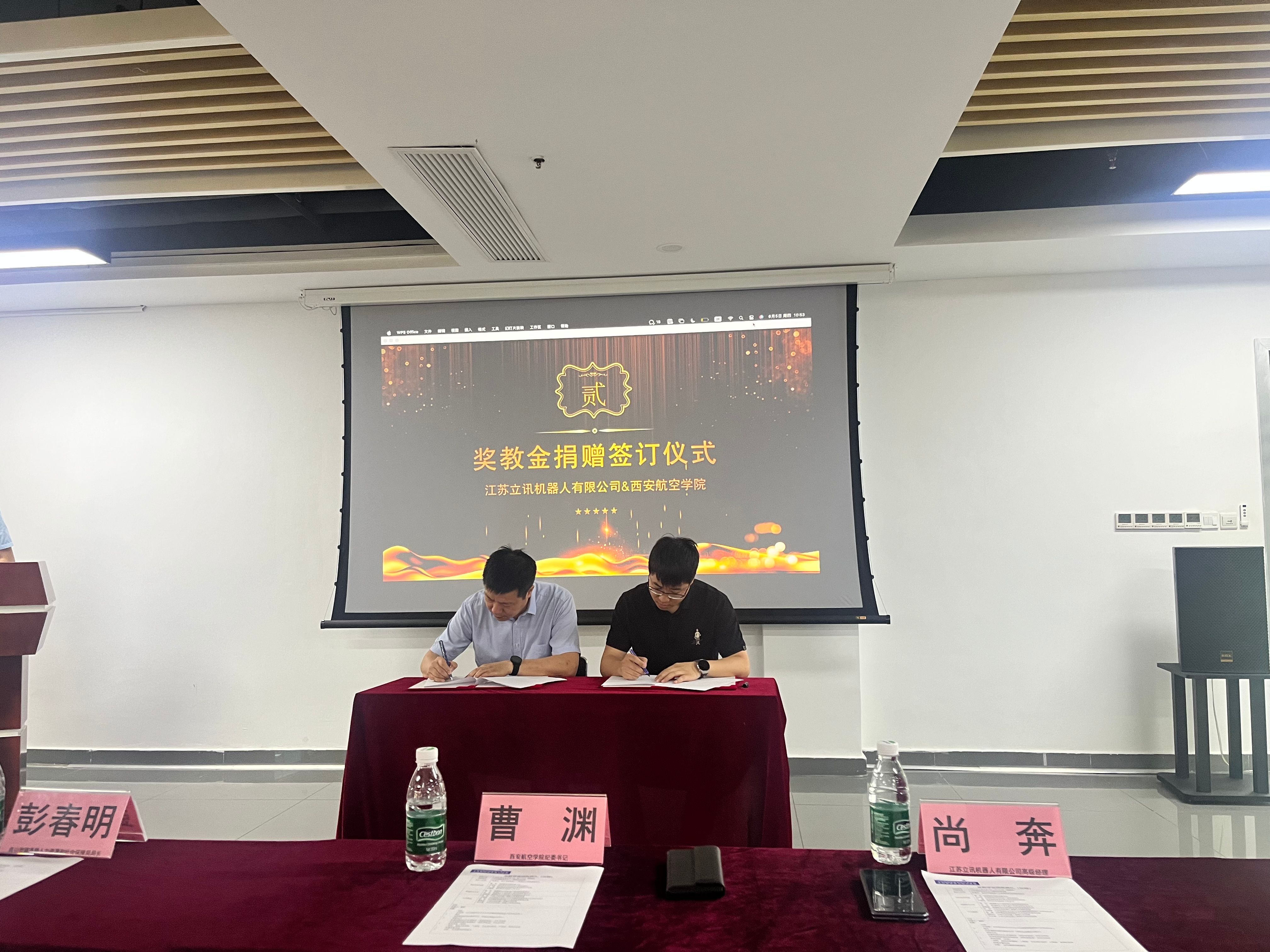 在喜迎建校70周年之际,6月5日,学校纪委书记曹渊、金年会jinnianhuicom院长王永锋等一行赴江苏立讯机器人有限公司,出席“江苏立讯机器人奖教学金”捐赠及颁奖典礼,并深入进行校企合作调研。昆山市锦溪镇人社局局长彭春明、立讯机器人公司高级经理尚奔等企业领导出席活动。