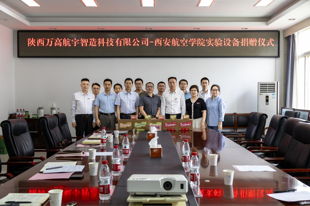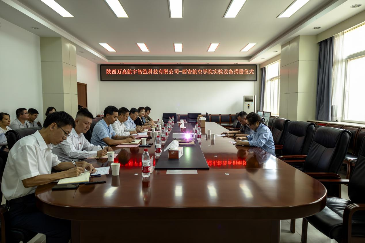 2025年6月9日,陕西万高航宇智造科技有限公司向金年会官网捐赠实验设备仪式在阎良校区第一会议室隆重举行。万高航宇智造科技有限公司董事长万能、商务经理赵晓萍,金年会官网校长蒲永平、副校长宋文学及金年会jinnianhuicom领导班子和教师代表出席了此次活动。捐赠仪式由金年会jinnianhuicom党总支书记孙茉莉主持。