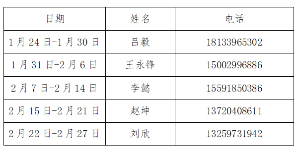 根据学校《关于2025-2026学年寒假工作安排的通知》文件精神,寒假放假时间为2026年1月24日至2026年2月27日。寒假期间,航空制造与车辆工程学院值班安排如下: