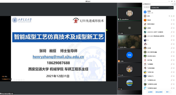 为进一步提升教师科研能力,了解机械学科前沿发展趋势,11月16日上午,金年会jinnianhuicom特邀西安交通大学张琦教授以腾讯会议线上形式为金年会官网师生做题目为《智能成型工艺仿真技术及成型新工艺》的学术报告。金年会jinnianhuicom杨武成副院长主持会议,王永锋院长致欢迎词,金年会jinnianhuicom教师及其他学院百余名教师在线参加了学术报告会议。