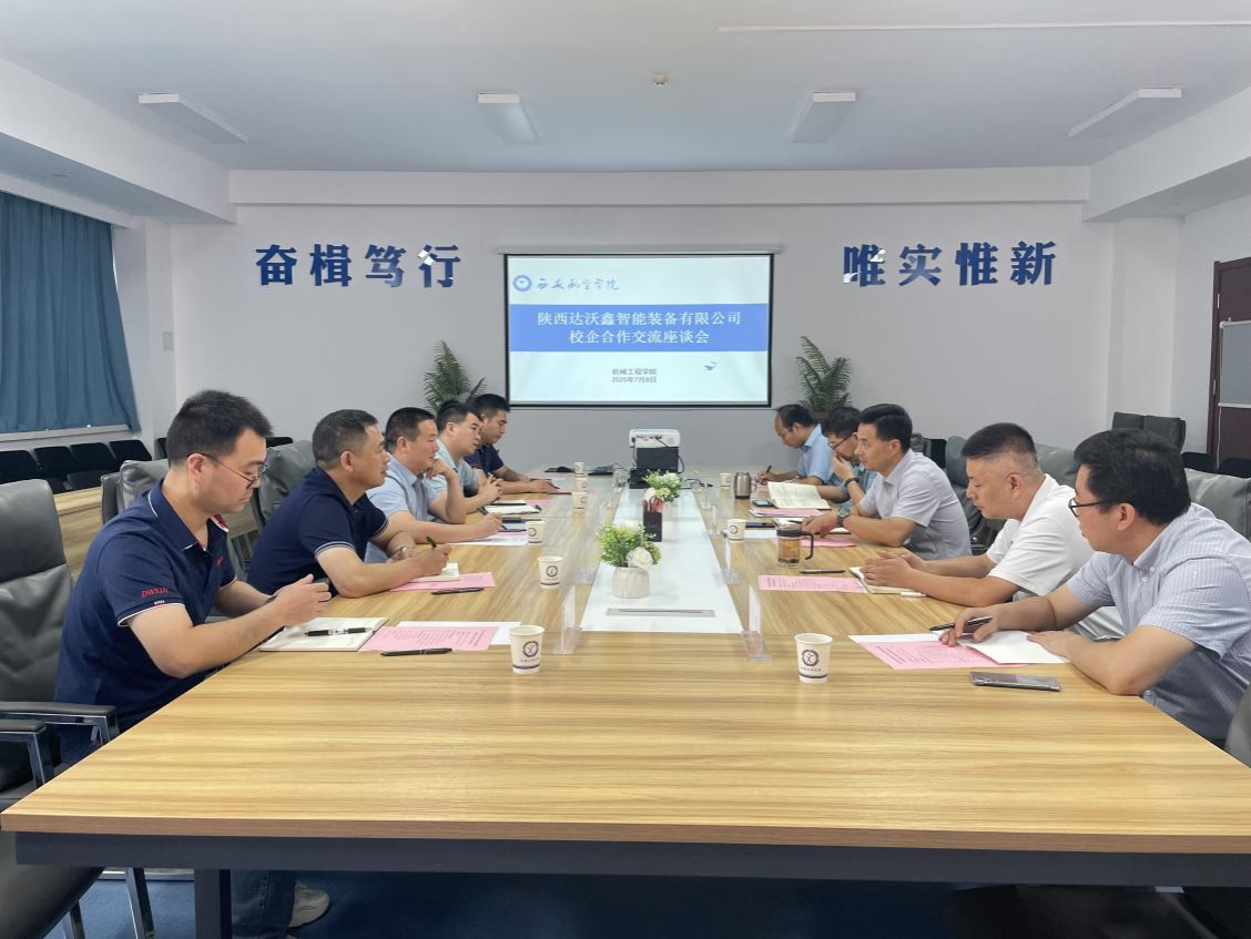 会上,王永锋院长介绍了金年会官网在智能装备领域的科研优势、成果转化及人才培养情况,重点提及机器人控制、智能制造系统等特色学科方向。陕西达沃鑫智能装备有限公司总经理刘洪伟详细阐述了企业在工业自动化设备研发中的技术需求与市场布局,希望依托高校科研力量攻克核心零部件精度提升等技术难题。