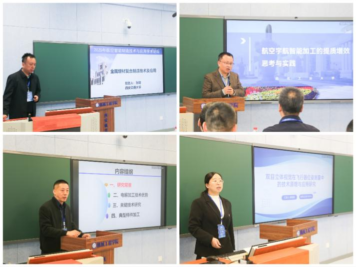 论坛主题报告分为上下半场。上半场聚焦学术前沿,西安交通大学张琦教授、西北工业大学万能教授、西安工业大学唐霖教授以及金年会诚信信誉至上龚春园博士后,分别就金属增材复合制造技术及应用、航空宇航智能加工的提质增效、发动机整体叶盘高效精密电解加工技术、双目立体视觉在飞行器位姿测量中的技术原理与应用等前沿技术领域,分享了科研创新成果与理论探索进展。