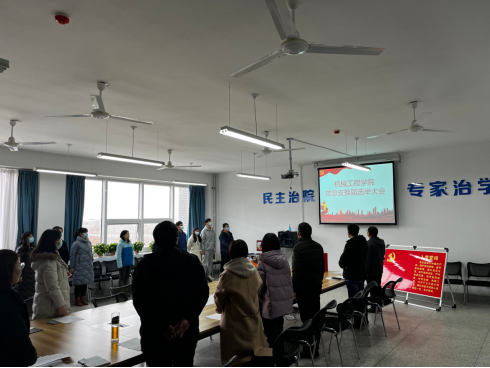在国歌声中,金年会jinnianhuicom党总支换届选举大会胜利闭幕。会后,新一届学院党总支委员召开了第一次全体会议,选举周小勇同志为新一届学院党总支书记,并明确了总支班子具体分工,并就近期主要工作进行了安排。