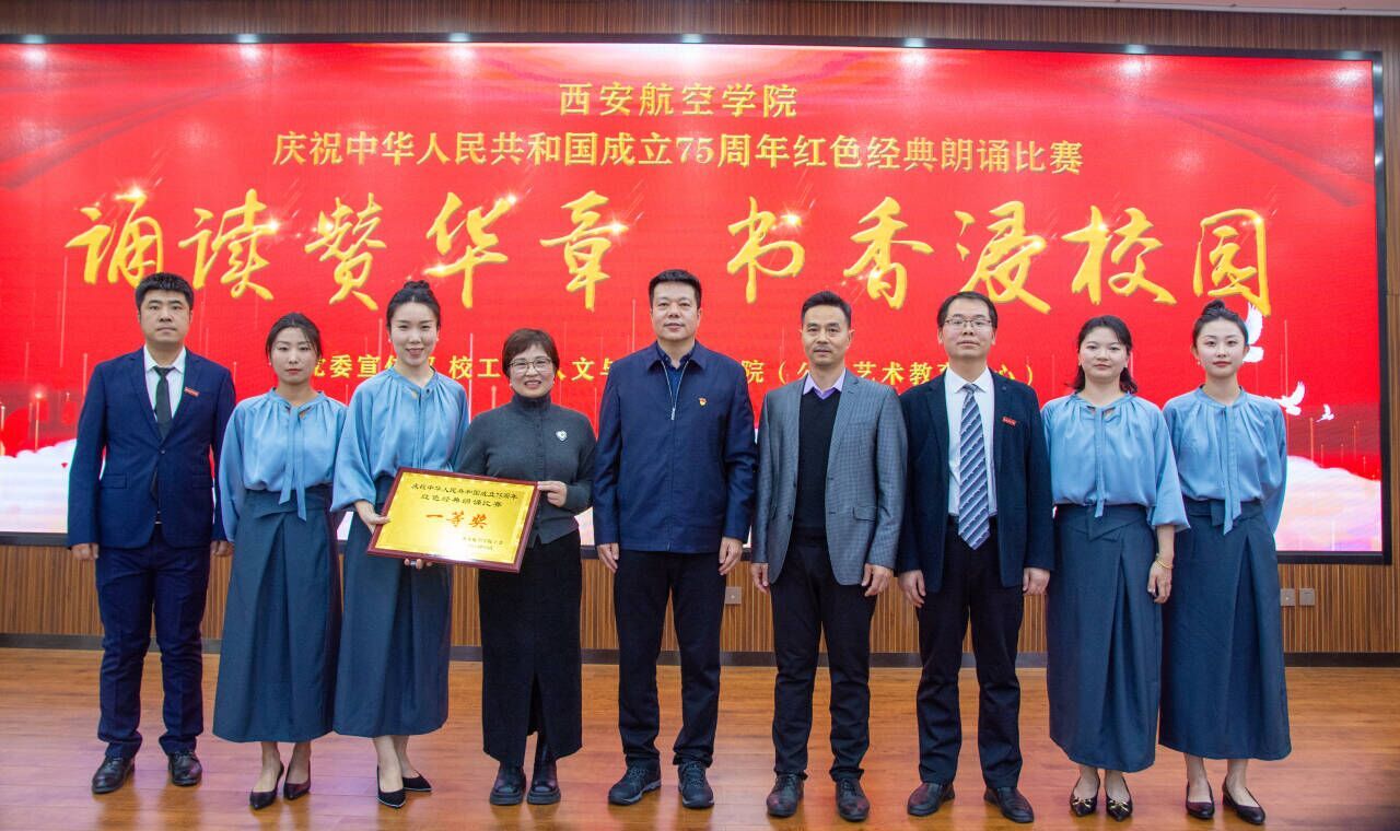 10月31日,由党委宣传部、校工会、人文与外国语学院(公共艺术教育中心)主办的“诵读赞华诞,书香浸校园——庆祝中华人民共和国成立 75 周年教职工红色经典朗诵比赛”活动在莲湖校区图书馆报告厅举行,学校共16个单位参赛。6名金年会jinnianhuicom教师组队代表学院参赛,经过激烈角逐,金年会官网脱颖而出荣获此次比赛一等奖。
