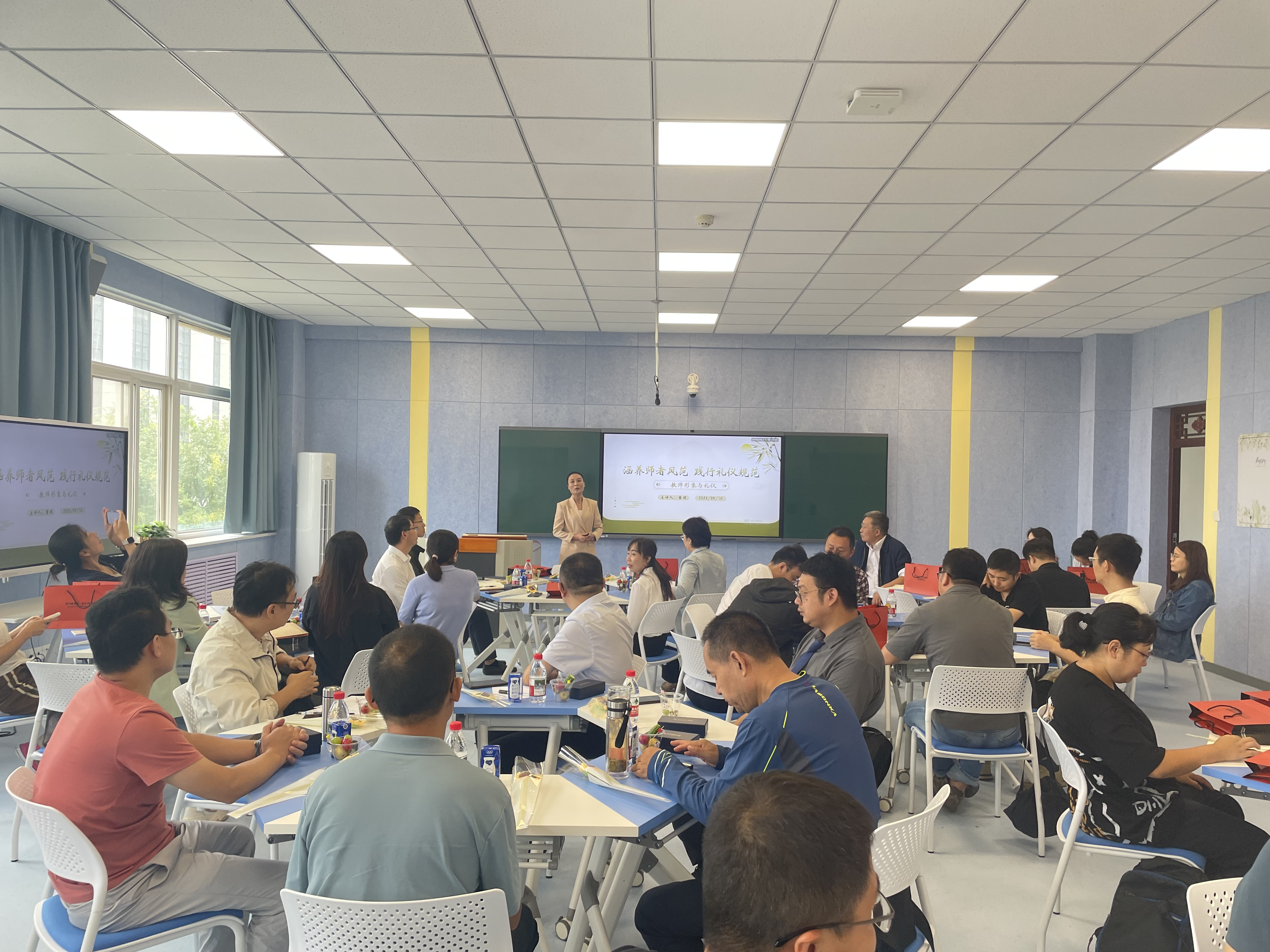 为塑造良好的教师职业形象,助力学校70周年校庆的成功举办,全方位迎接审核评估与硕士学位点建设,2025年9月10日上午,金年会jinnianhuicom分会在阎良校区3号实验楼3316智慧教室隆重举办教师职业形象提升专题讲座。本次讲座特邀资深礼仪培训师董娟担任主讲,学院全体教职工80余人参加聆听学习。