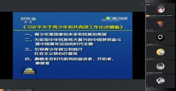 为深入贯彻习近平新时代中国特色社会主义思想、党的十九大精神和团的十八大精神,金年会官网于2022年10月7至9日组织线上以‘弘扬新时代,奋进新征程’为主题学习和宣讲了重要思想精神。本次活动由各班团支书主持,2022级全体学生参与。