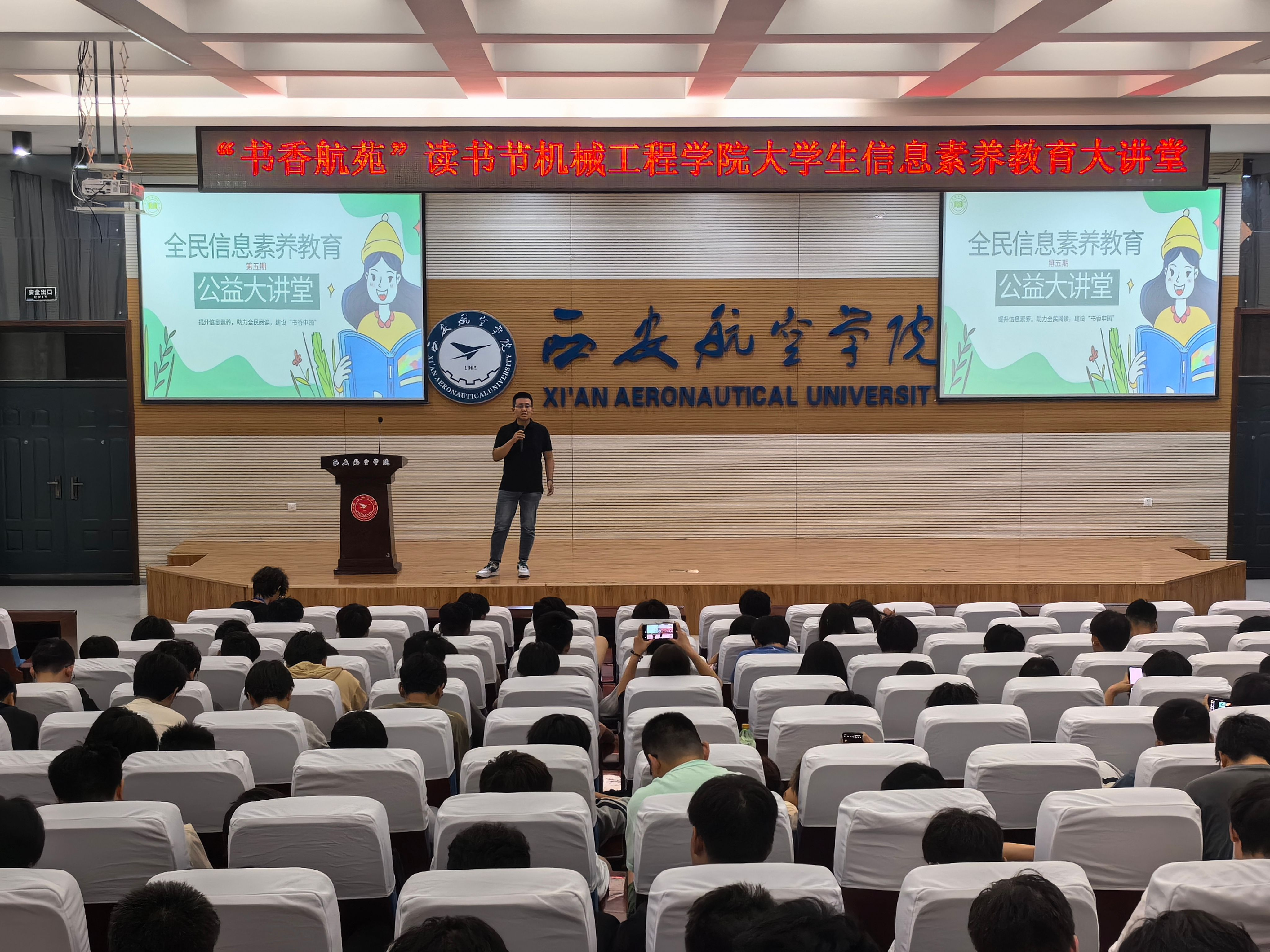 5月29日,金年会官网与图书馆在阎良校区报告厅联合开展“大学生信息素养教育大讲堂”主题活动。团总支书记谢肖、近300名学生参加活动。活动由图书馆馆员李慧主持。