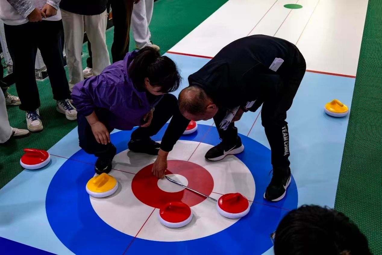 七秩弦歌庆华诞,赛场逐梦展风采!在学校七十周年校庆的热烈氛围里,迎校庆·首届“立讯精密杯”大学生陆地冰壶比赛重磅来袭!同学们在一餐厅负一楼陆地冰壶场地同台竞技,为校庆增添了一抹灵动又热血的色彩。为丰富学校体育文化生活,增强学生身体素质与团队协作精神,10月13日下午七点,全校各级学院男子组预赛在一餐厅陆地冰壶场开赛。