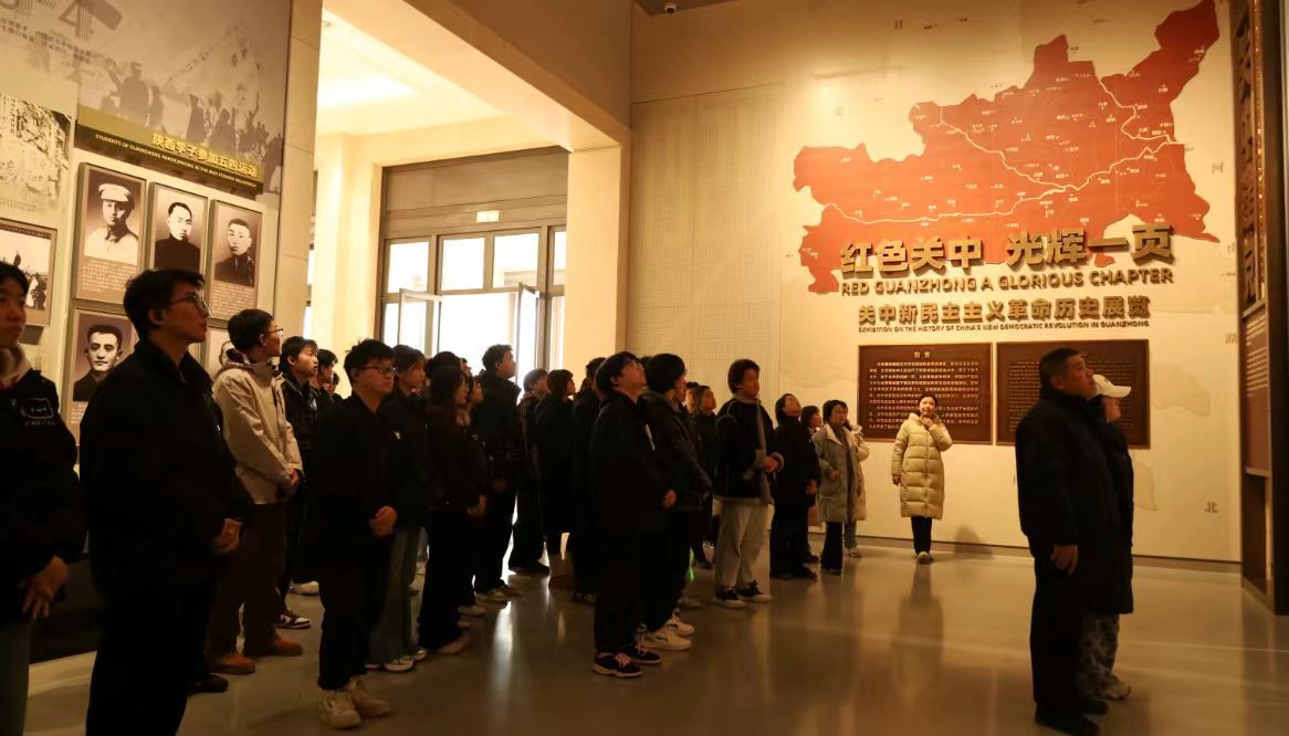 在纪念馆内,全体成员在讲解员的带领下,认真参观了“烽火关中·人民史诗”“光耀千秋·习老风范”“赓续奋进·三秦新篇”三大主题展区。通过一幅幅历史照片、一件件珍贵实物和详实的文献资料,大家系统回顾了关中地区波澜壮阔的革命历程,深切感悟了革命先辈坚定的理想信念和崇高的精神品格。特别是在“光耀千秋·习老风范”展区,师生们驻足良久,从习仲勋同志的革命事迹中汲取信仰的力量。