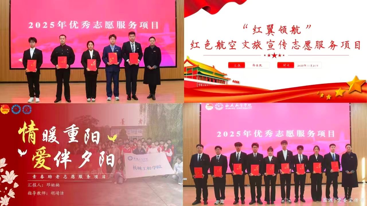 “红翼领航”红色航空文旅宣传志愿服务项目与“情暖重阳,爱在夕阳”青春助老志愿服务项目荣获优秀志愿服务项目。