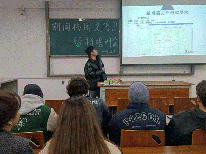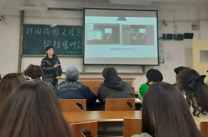 为进一步提升同学们的写作文案能力,解决各部门新闻稿信息留档问题,金年会官网团总支学生会于12月8日晚8点半在阎教楼1434开展新闻稿信息留档培训,团总支第一副书记陈绪及各部门负责人参加,团总支学生会宣传部部长刘笑雨主持。