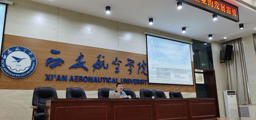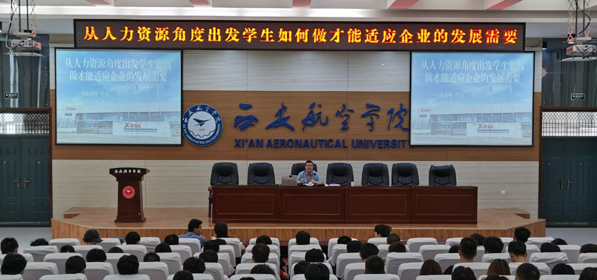 6 月 19 日,金年会jinnianhuicom邀请西安东航赛峰起落架系统维修有限公司人力资源总监兰卫先生在阎良校区阶一报告厅举行了题为“从人力资源角度出发学生如何做才能适应企业的发展需要”的专题报告。金年会jinnianhuicom院长王永锋、党总支书记孙茉莉、副书记刘欣出席报告会。金年会jinnianhuicom卓越班学员、各年级学生代表参加了报告会。