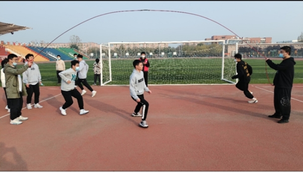 首先进行的是“趣味跳大绳项目”,“嘘~”一声哨声响起,同学们一个接着一个地跳着,流利的动作,巧妙的躲闪,无不展示着金年会官网学子无限的活力。项目里,同学们团结协作,相互帮助,最终都取得了不错的成绩。