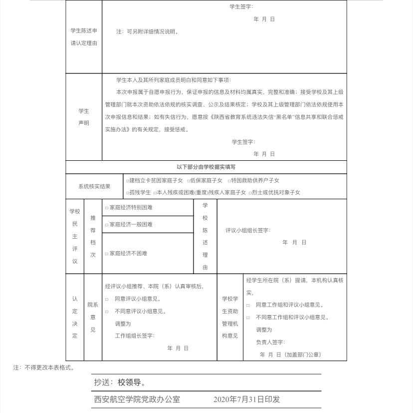 附件:陕西省家庭经济困难学生认定暨国家教育资助申请表